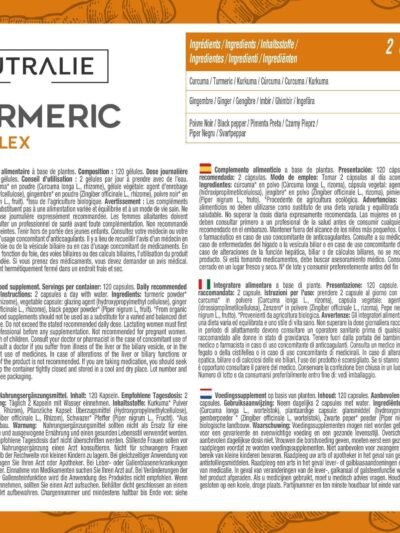 د.م. 283,50Le prix initial était : د.م. 283,50.د.م. 189,00Le prix actuel est : د.م. 189,00.Nutralie CURCUMA COMPLEX est le résultat d’une combinaison de trois ingrédients naturels et biologiques composés de curcuma, de gingembre et de poivre noir. -