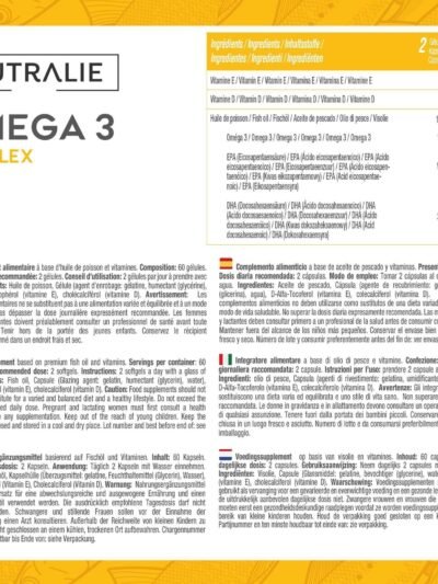 د.م. 238,50Le prix initial était : د.م. 238,50.د.م. 159,00Le prix actuel est : د.م. 159,00.OMEGA 3 COMPLEX est un huile contenue dans notre supplément d’oméga 3 est fabriquée à partir de concentrés marins Omegatex, qui sont riches en EPA et DHA et sont obtenus de manière durable à partir de poissons gras. Il est également associé aux vitamines E, D3 et D, ces dernières contribuant au maintien d’une ossature normale et d’une fonction musculaire normale.