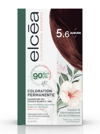 د.م. 217,50Le prix initial était : د.م. 217,50.د.م. 145,00Le prix actuel est : د.م. 145,00.Elcea Coloration Experte AUBURN 5.6 est une solution permanente offrant une couverture complète des cheveux blancs dès la première application. Enrichie en Lait d’Hibiscus et formulée avec 89% d’ingrédients d’origine naturelle, cette coloration garantit une tenue exceptionnelle dans le temps tout en respectant la nature des cheveux. Dépourvue d’ammoniaque pour un parfum agréable, elle assure non seulement une couverture à 100% des cheveux blancs mais également une brillance longue durée et un résultat professionnel. De plus, ELCEA prend soin du cuir chevelu, assurant confort et respect. -