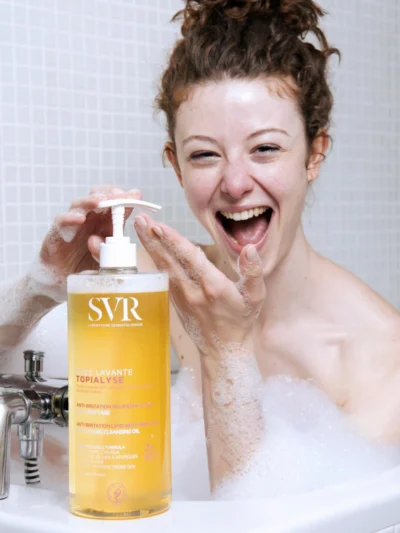 د.م. 258,22Le prix initial était : د.م. 258,22.د.م. 172,15Le prix actuel est : د.م. 172,15.SVR TOPIALYSE Huile Lavante 400ML est un véritable soin lavant ; le premier geste de votre routine apaisante, anti-irritation, anti-grattage. Cette huile sensorielle riche en actifs relipidants et hydratants nourrit intensément la peau, préserve le film hydrolipidique et protège des agressions extérieures (froid, frottements) et des effets desséchants de l’eau calcaire. Sa texture huile soyeuse et enveloppante préserve l’hydratation pendant 24h pour un confort immédiat et longue durée. La peau est douce, le parfum délicat, c’est le produit chouchou de toute la famille ! -