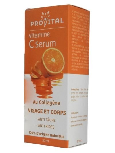 د.م. 127,50Le prix initial était : د.م. 127,50.د.م. 85,00Le prix actuel est : د.م. 85,00.Provital Serum Vitamine C et Collagène 30ml agit à la fois sur les rides, les tâches brunes et l’éclat du teint. Améliore la structure de la peau. Stimule la synthèse de collagène responsable de la fermeté et l’élasticité de la peau. Régule la production de mélanine dans notre peau. Antioxydant, la vitamine C sérum en synergie avec la vitamine E possède une action puissante pour neutraliser les radicaux libre. Le sérum à base de vitamine C et collagène Provital est efficace contre les rides liées au vieillissement normal et prématuré de la peau, il la protège également contre les expositions répétées au soleil, et agit en réparateur des tissus abimés par les agressions du climat extérieur. -
