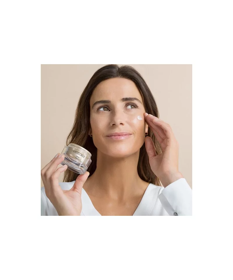 ESTHEDERM EXCELLAGE CREME 50 ML Avec l’âge, la peau se fragilise, s’assèche, devient plus terne, moins souple. La crème de soin EXCELLAGE est le soin complet qui répond à ces besoins accrus de nutrition en agissant également sur tous les signes visibles du vieillissement cutané. Plus ferme, la peau retrouve éclat, confort et densité. BREVETS : TECHNOLOGIE REPAIR TECHNOLOGIE GLOBAL CELLULAR PROTECTION, EAU CELLULAIRE