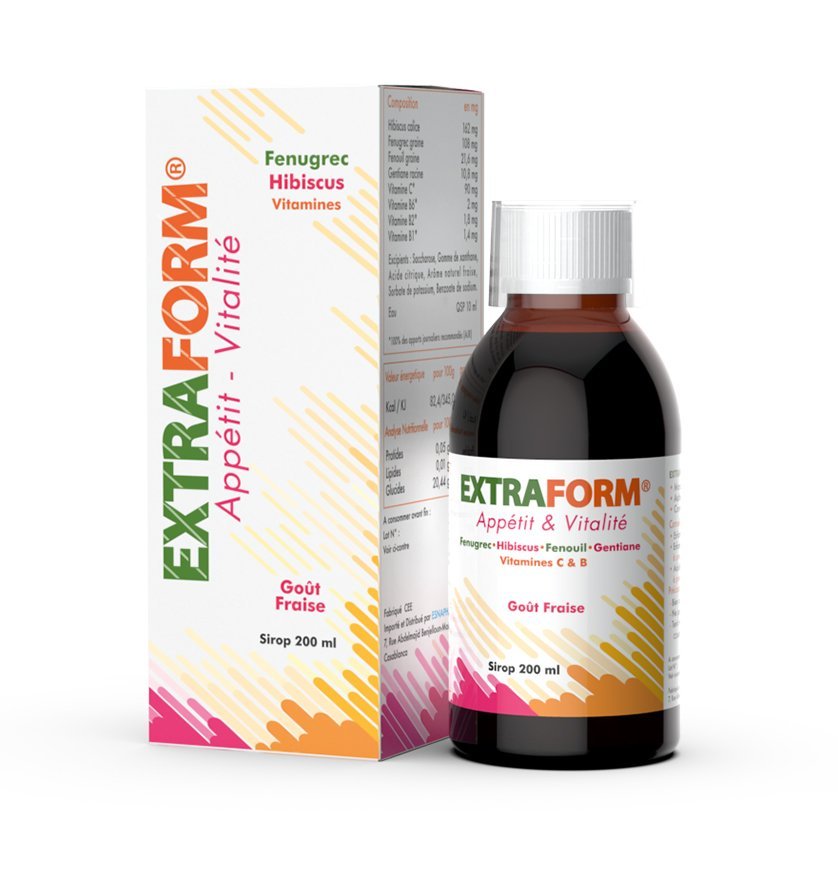 EXTRAFORM SIROP 100ML riche en Fenugrec, possède la faculté de stimuler la prise de poids chez les personnes «maigres », et constitue un très bon fortifiant et « anabolisant » grâce à son abondance naturelle de protéines.