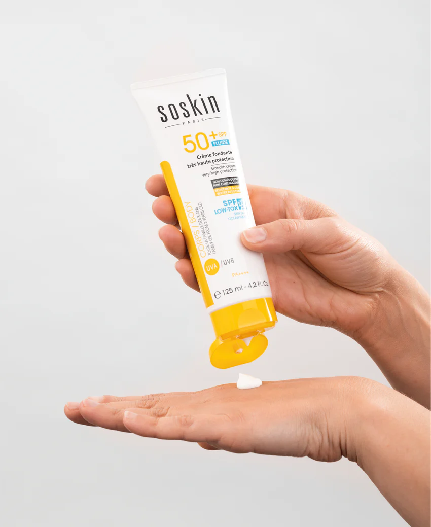SOSKIN ECRAN INVISIBLE FLUIDE très haute protection fluide protège efficacement contre les UVA et UVB, hydrate la peau et prévient les dommages cutanés liés au soleil.