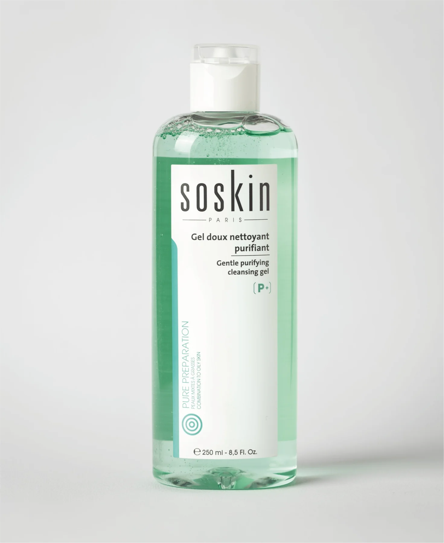 SOSKIN GEL DOUX NETTOYANT PURIFIANT 250 ML nettoie en profondeur sans dessécher la peau, éliminant efficacement les impuretés et l'excès de sébum pour une peau purifiée.