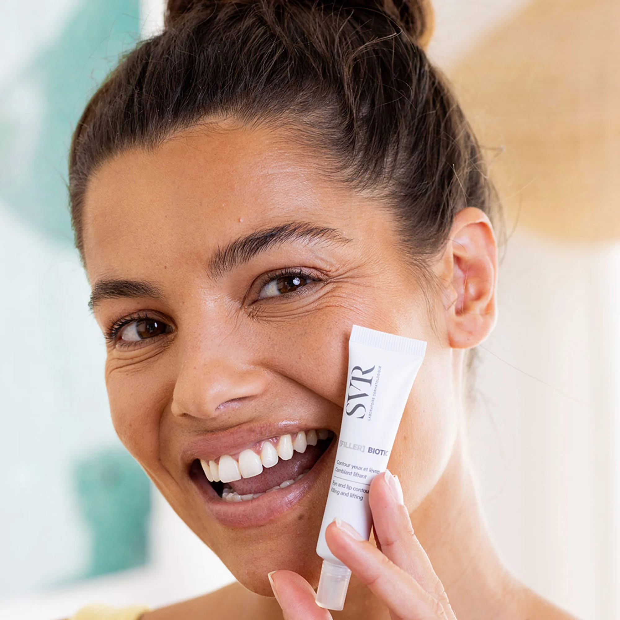 SVR Biotic [FILLER] n contour des yeux et des lèvres comblé et lifté dès 28 jours* grâce à son cœur de formule régénérant et lissant associé à un peptide botox-like.