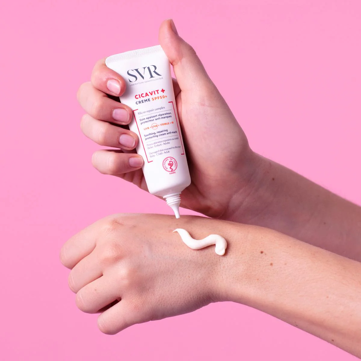 SVR CICAVIT+ Crème SPF50+ Soin apaisant intense qui répare 7 fois plus vite. Protège contre les rayons, limite les risques de marques rouges et brunes.