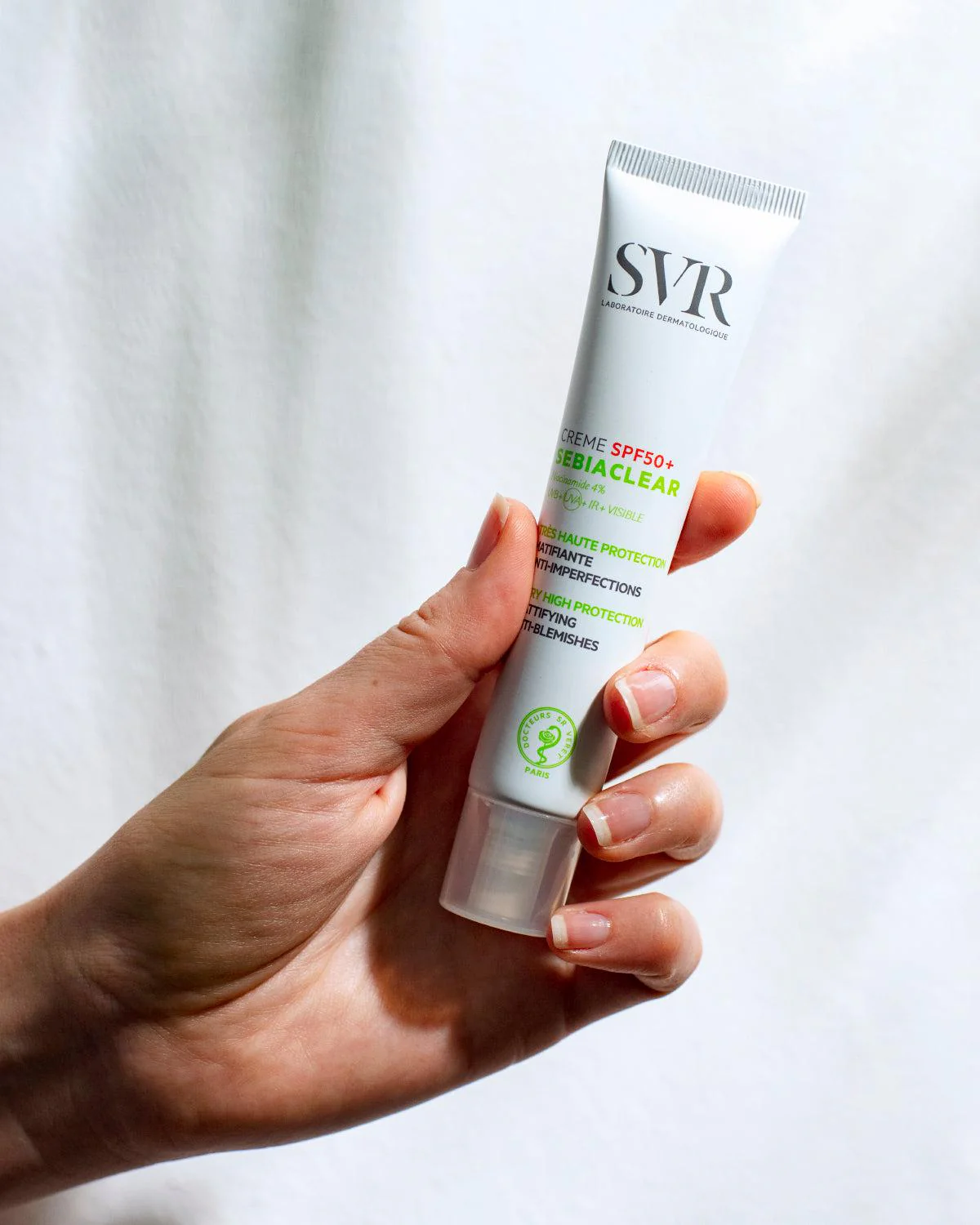 SVR SEBIACLEAR Crème SPF50+ Pour les peaux sensibles mixtes à grasses, à tendance acnéique, à imperfections, marques, exposées aux UV.